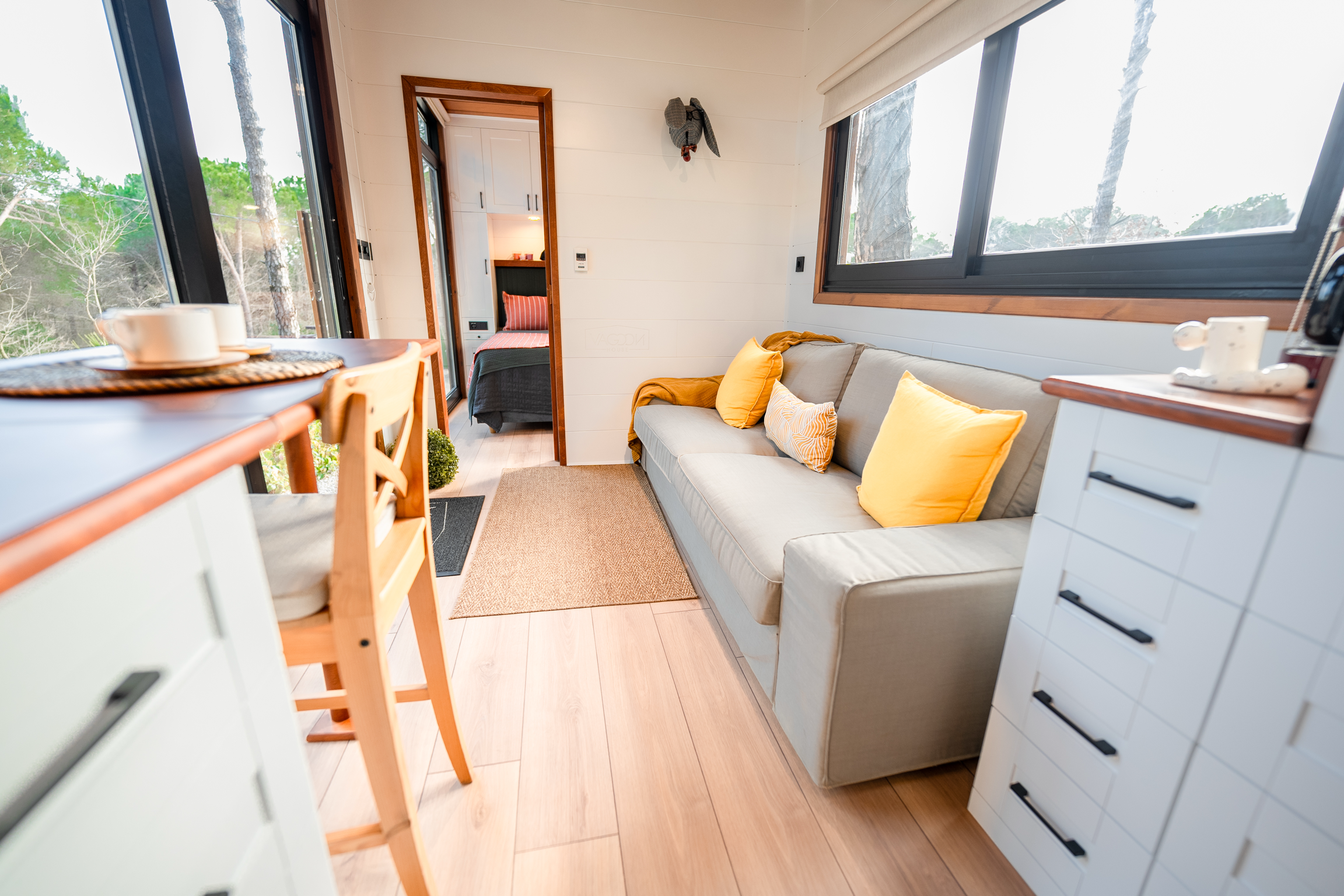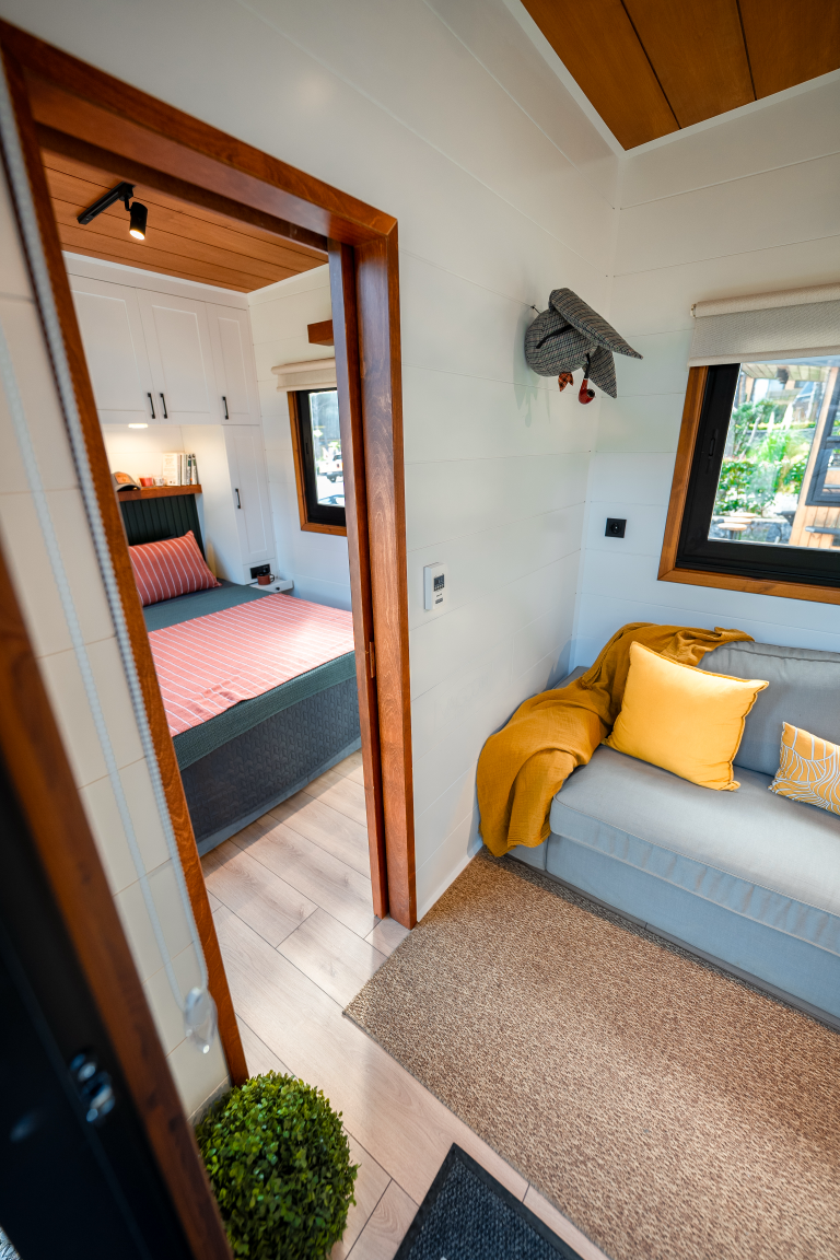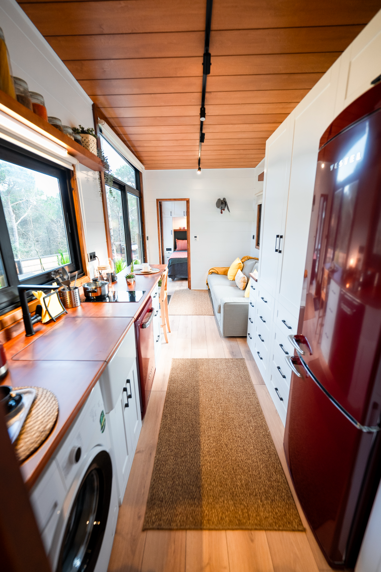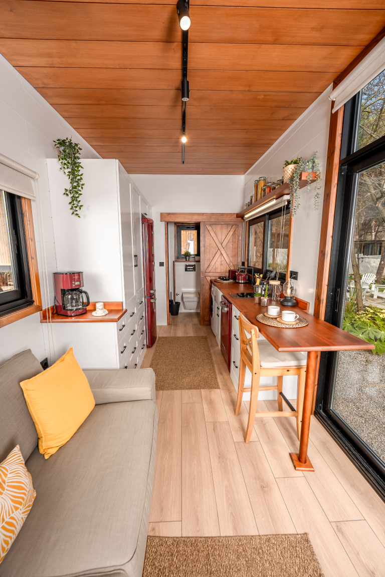 Der Fokus liegt auf Effizienz und Gemütlichkeit. Jeder Quadratmeter ist optimal genutzt, um ein angenehmes und funktionales Wohnumfeld zu schaffen. Klare Linien, hochwertige Materialien und eine helle, freundliche Atmosphäre prägen das Innere. Dieses Tiny Houses beweist dass man für ein komfortables Zuhause nicht viel Platz braucht.