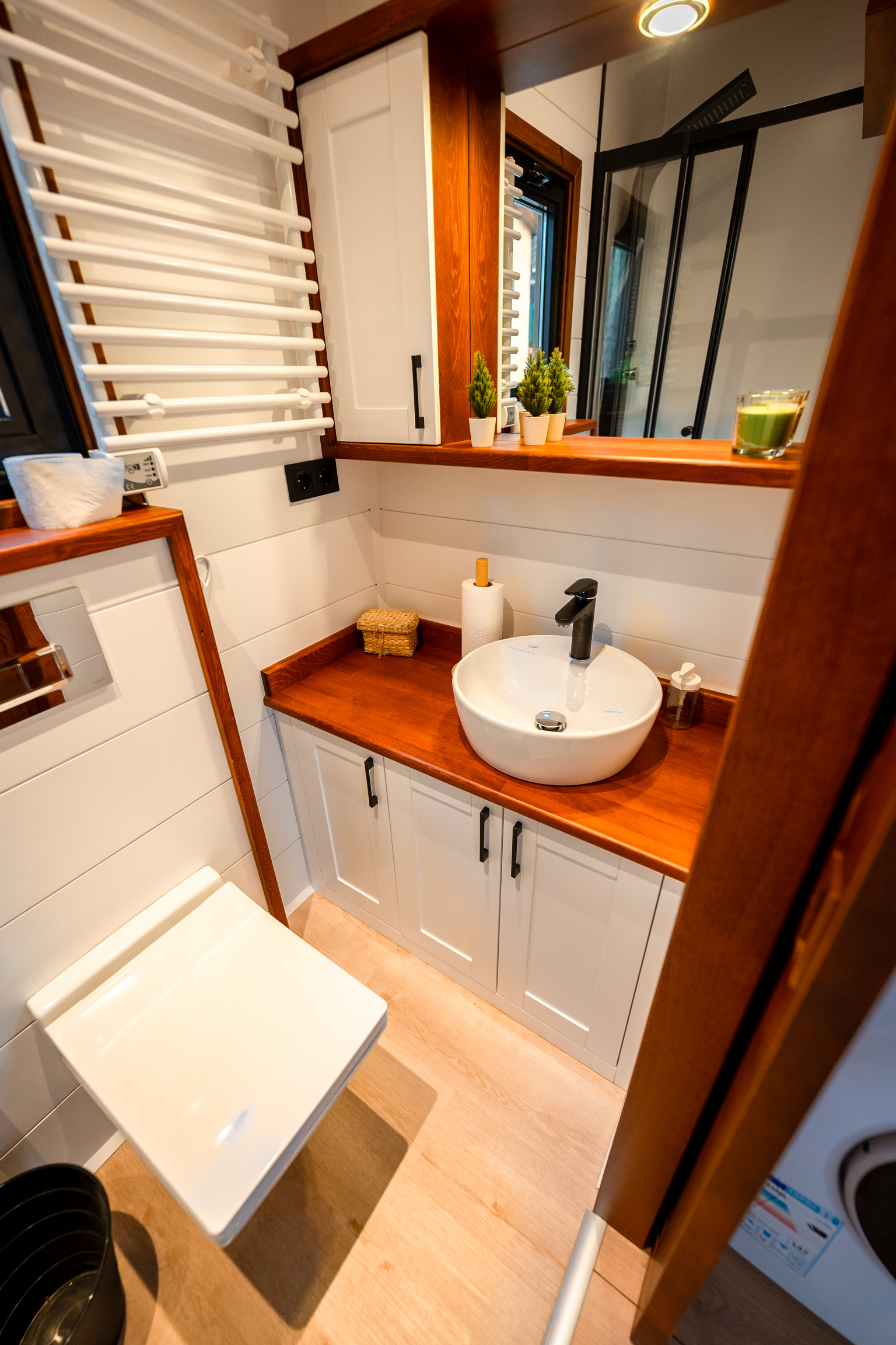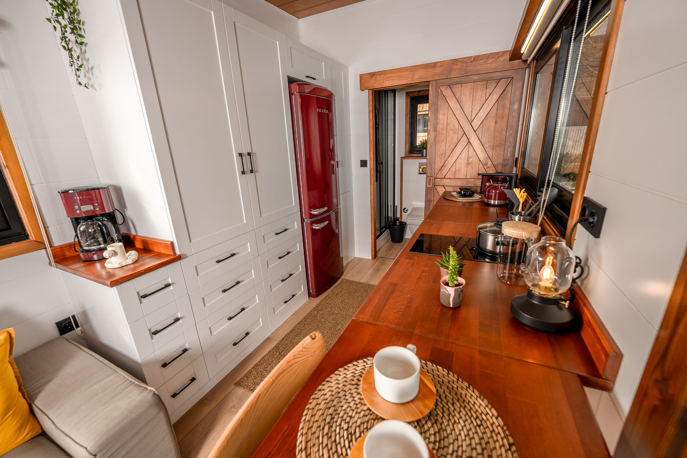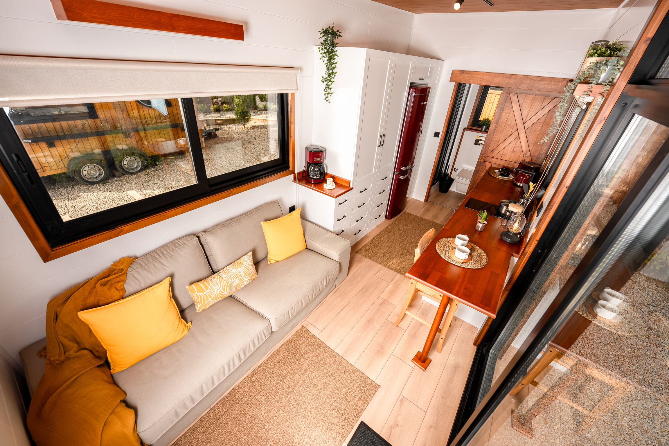 Der Fokus liegt auf Effizienz und Gemütlichkeit. Jeder Quadratmeter ist optimal genutzt, um ein angenehmes und funktionales Wohnumfeld zu schaffen. Klare Linien, hochwertige Materialien und eine helle, freundliche Atmosphäre prägen das Innere. Dieses Tiny Houses beweist dass man für ein komfortables Zuhause nicht viel Platz braucht.